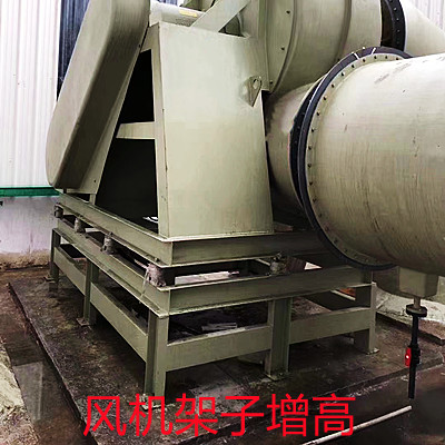 還有一些是風機的特殊類型,比如加裝隔音箱的風機或者風機架子按照需求尺寸進行了改變。如上圖所示,受到安裝現場的影響,成型的風機需要在架子底部安裝一定高度的支撐架。