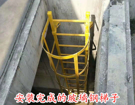 d、使用玻璃鋼矩形條制作保護欄,然后先將一側固定在玻璃鋼梯子上,再固定另一側;